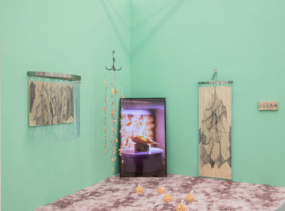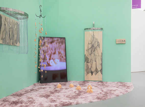 d33p cuts, t3nd3r not3s is a solo presentation by Moses Tan, an autotheoretical installation that envelops queer theory, allegories, horror, and disavowals. Allegories of queerness and corporeality are portrayed through drawings, sculptures, and video in an installation. Featuring an immersive space, Moses utilises world-building as an act of speculating disavowed and denied histories - both personal and communal. Growing up in a state such as Singapore, wherein queerness is mitigated on various levels - from legislative, to military, to education, to censorship, repression, codedness, and assimilation becomes a necessary strategy to exist in highly controlled, heteronormative situations and environments.